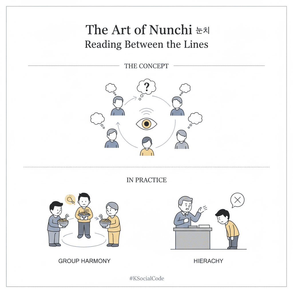 What exactly is “Nunchi” (눈치)? If you have ever spent time in South Korea, you have likely heard this term. In a dictionary, Nunchi is defined as “the ability to gauge another person’s feelings or a situation’s atmosphere.” However, in Korea, it is much more than that—it is an essential survival skill.